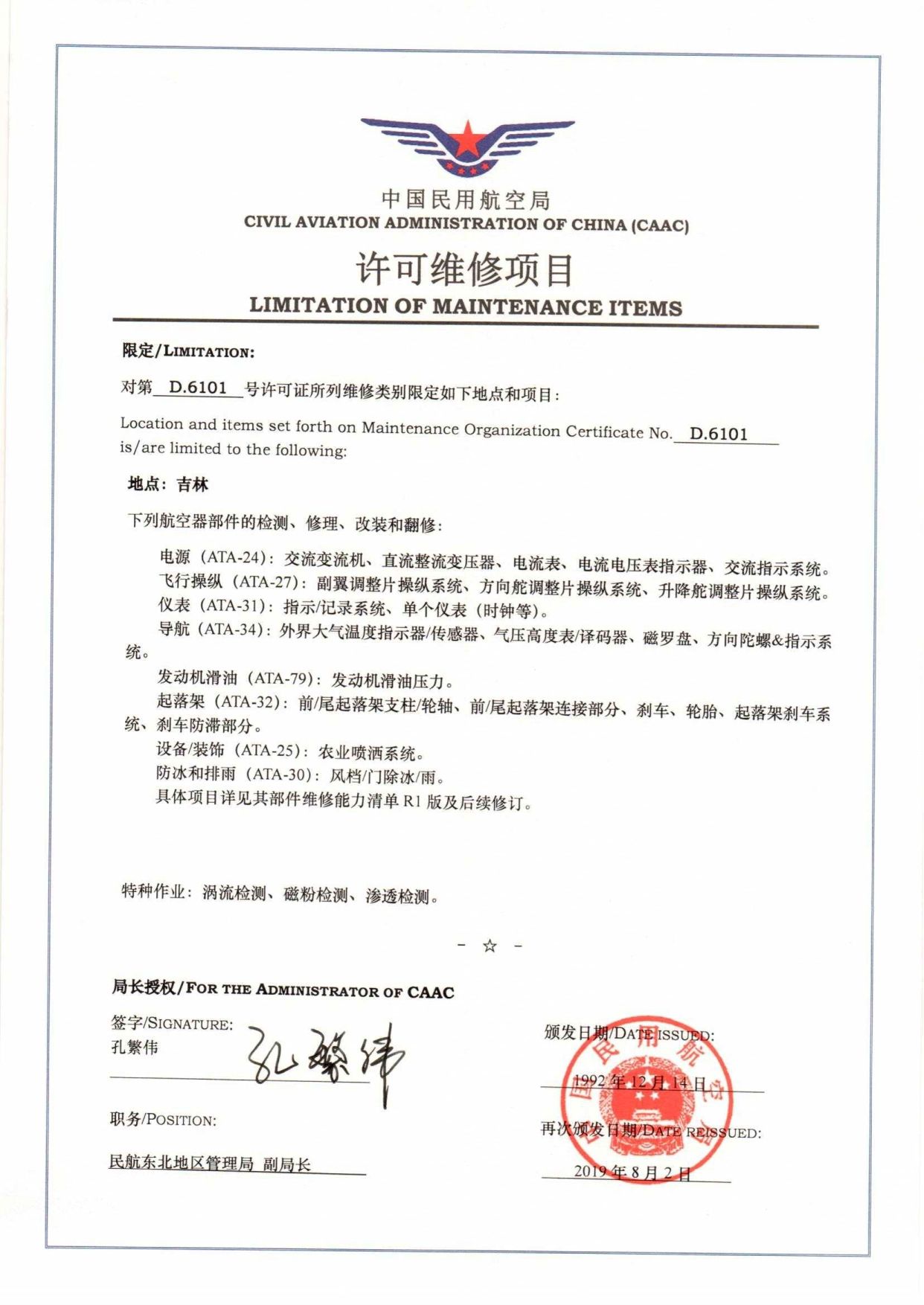 2019年2月份吉航公司完成了部件维修申请准备工作;3月份通过了局方现场初步审核;7月24日-25日,通过了吉林监管局部件维修资质申请项目复审工作;2019年8月2日,公司LGR、MEC部件维修资质获得中国民航局批准。为民机能力建设的稳步发展奠定了基础。